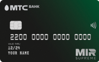Дебетовая карта «Mir Supreme» с кэшбэком до 30%входит в линейку из 8 дебетовых карт МТС-Банка Сочи. Проект BNKF предоставляет подробную информацию об условиях выпуска и обслуживания данной карты. Однако для получения актуальных данных рекомендуем обратиться непосредственно в call-центр банка по телефону 8 800 250 05 20.